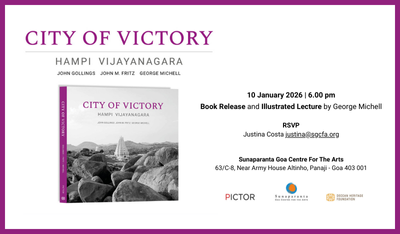 10 Jan 2026 to 10 Jan 2026Sunaparanta Goa Centre for the Arts, in association with Pictor Publishing and the Deccan Heritage Foundation, are pleased to announce the release of CITY OF VICTORY, a stunning visual presentation of one of Asia’s most magnificent historical places. The book brings to life the grandeur of the Vijayanagara empire through a sweeping narrative.